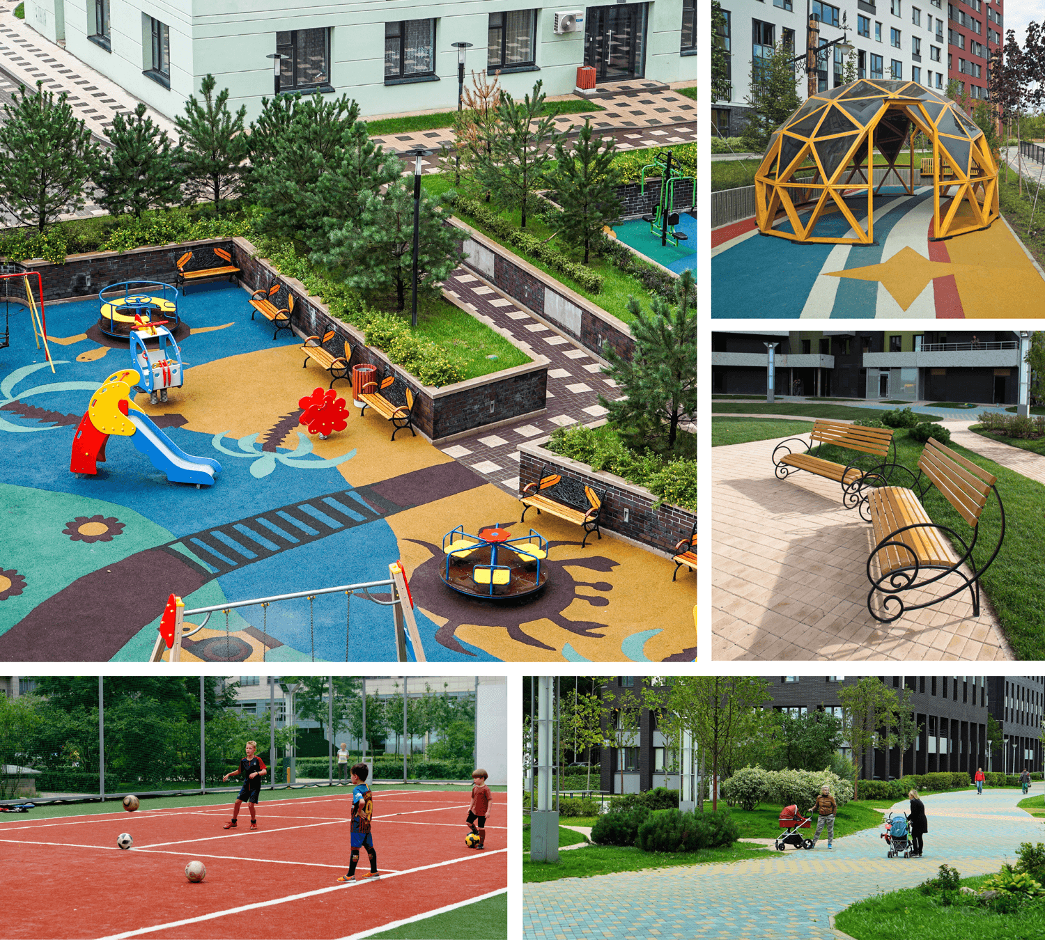 Между домами расположены уютные дворы с детскими и спортивными площадками, а также площадками для отдыха взрослых.