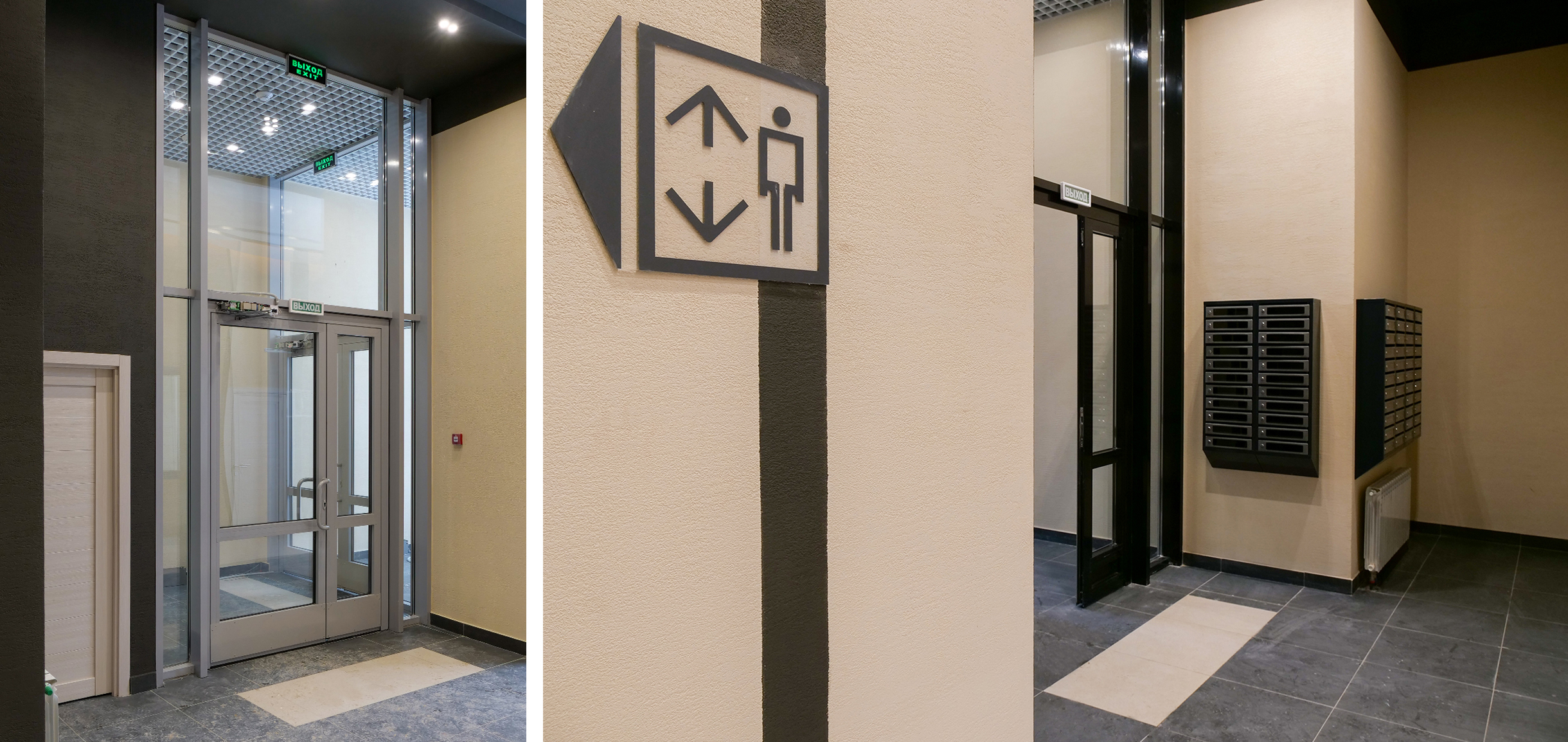 В каждом подъезде расположен просторный холл площадью 116 кв.м. с двумя лифтами, помещения дежурного, помещение для хранения уборочного инвентаря, зона размещения почтовых ящиков и технические помещения, колясочная.