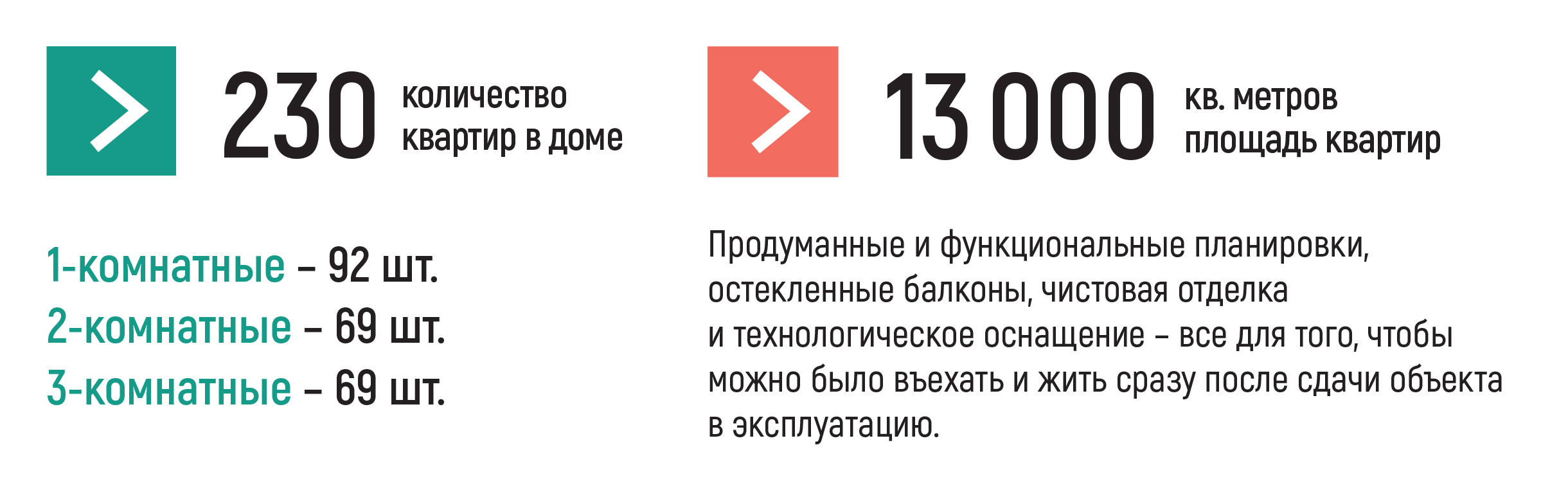Общее число квартир в доме - 230: