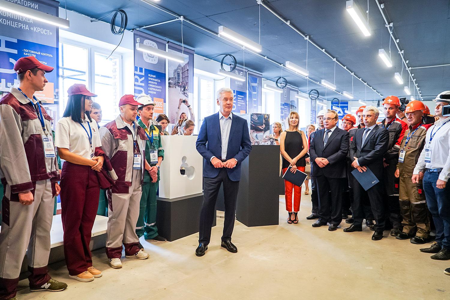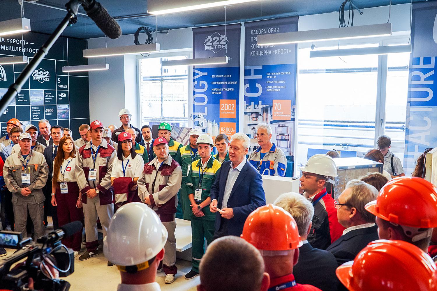 Сергей Собянин пообщался с коллективом Концерна «КРОСТ» и осмотрел инновационные разработки фабрик Концерна, которые сегодня активно используются в ключевых городских проектах. «Я знаю, что ваше предприятие одним из первых стало производить современные, качественные материалы, спасибо вам за вашу работу. Город всегда поддерживал и будет поддерживать высокотехнологичные производства, которые своей продукцией, в конечном итоге, и облагораживают Москву», — обратился к коллективу технопарка «Строительный» кандидат на пост мэра.
