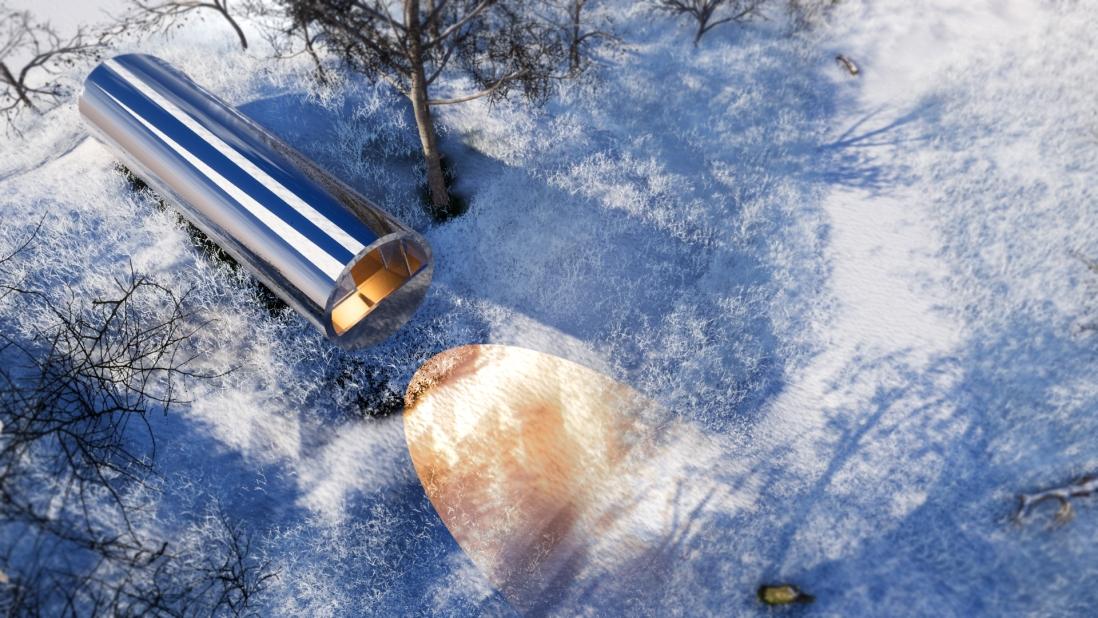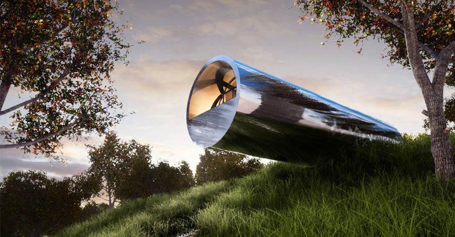 По задумке автора, дом будет представлять собой вытянутый металлический цилиндр, который разместят на рельефе с перепадом высоты. В функциональном плане это будет полноценный жилой дом со всеми необходимыми коммуникациями.