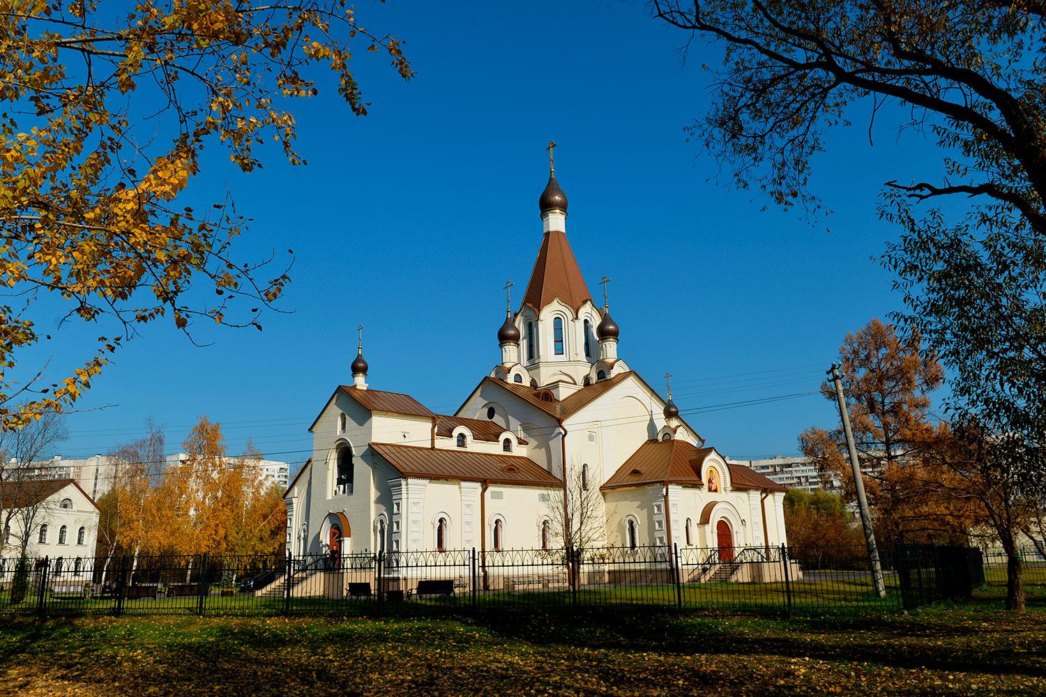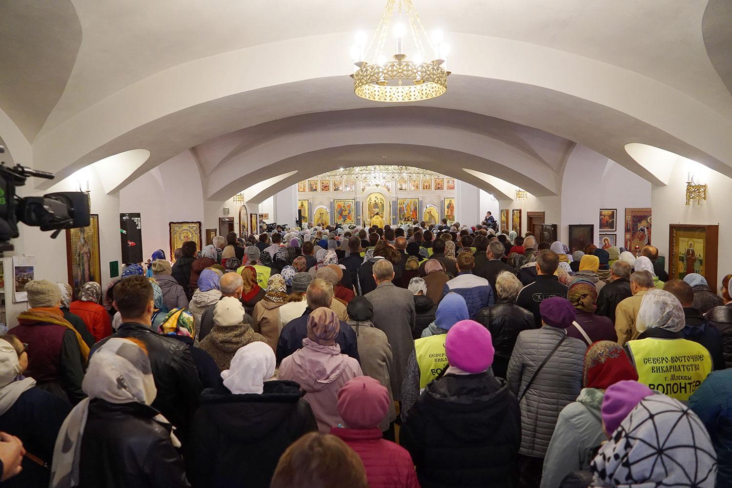 Центральный престол храма освящен в честь иконы Божией Матери «Неопалимая Купина», правый (южный) – в честь великомученика и целителя Пантелеимона, левый (северный) – в честь преподобного Иринарха, затворника Ростовского. Богослужебные песнопения исполнил хор Московской духовной академии, регент – иеромонах Нестор Волков.