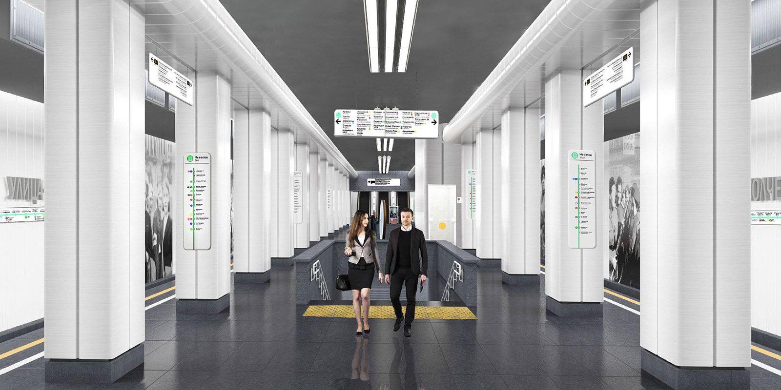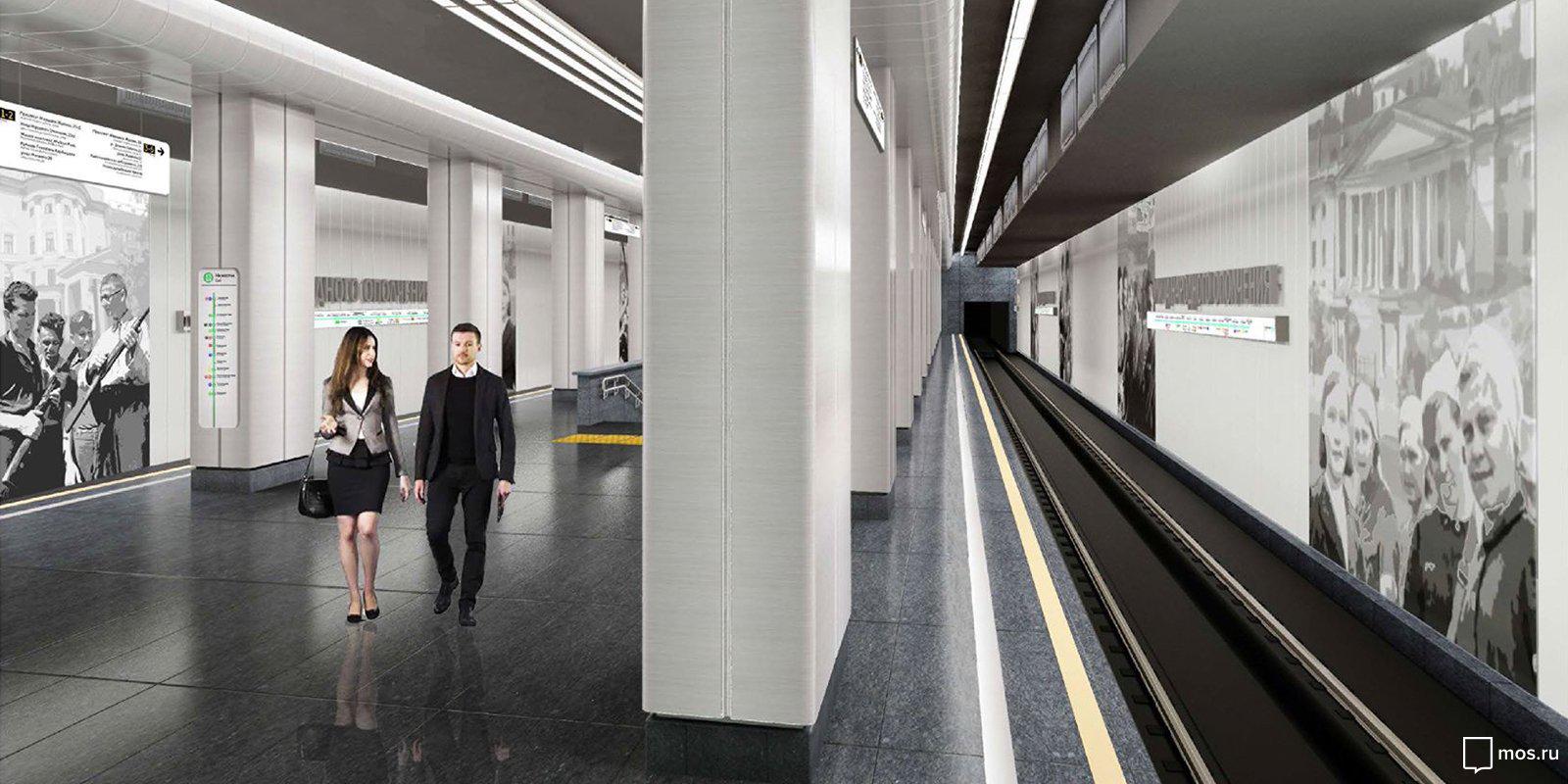 В дизайне учли историческое наследие города. На путевых стенах появятся черно-белые фотографии горожан, защищавших Москву в Великую Отечественную войну.