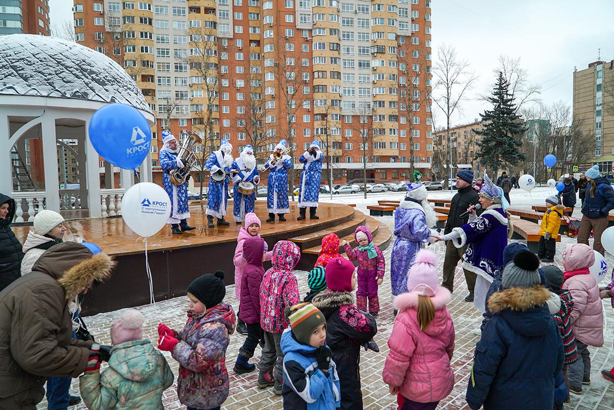 23 декабря на Бульваре Генерала Карбышева в 82 квартале состоялись праздничные гуляния. Концерн «КРОСТ» и Управа района подарили жителям настоящий праздник новогодней сказки. Жителей приехали поздравить не только Дед Мороз и Снегурочка, но и символ года - симпатичный Пес и даже целый оркестр Дедов Морозов, который исполнил любимые новогодние композиции. Гости пели популярные песни, кружились в веселом хороводе вокруг елки, могли посостязаться в конкурсах. А юные жители района участвовали в активных новогодних забавах, делали общий праздничный коллаж из мгновенных фото около елки и в конце все получили красивые вкусные подарки.