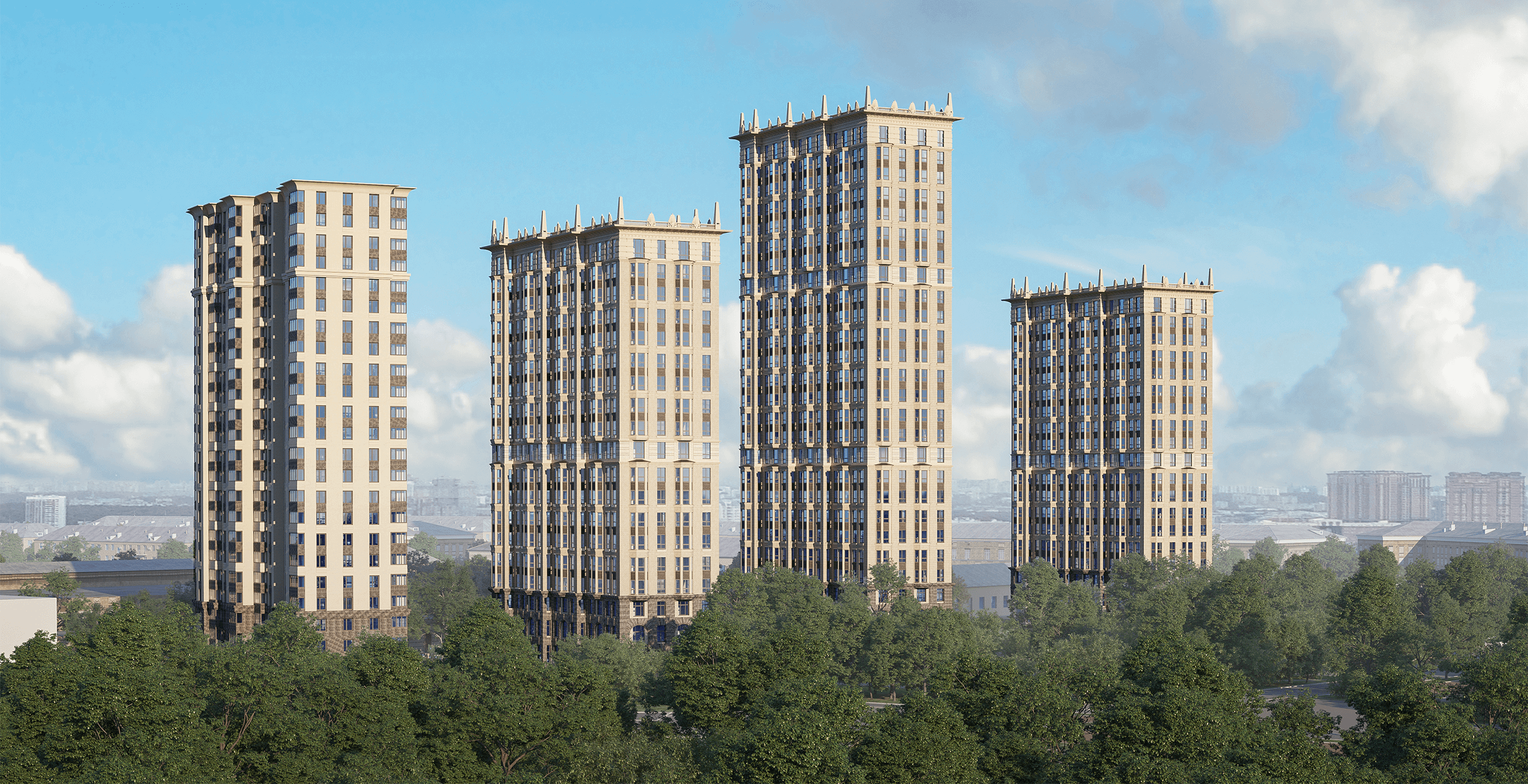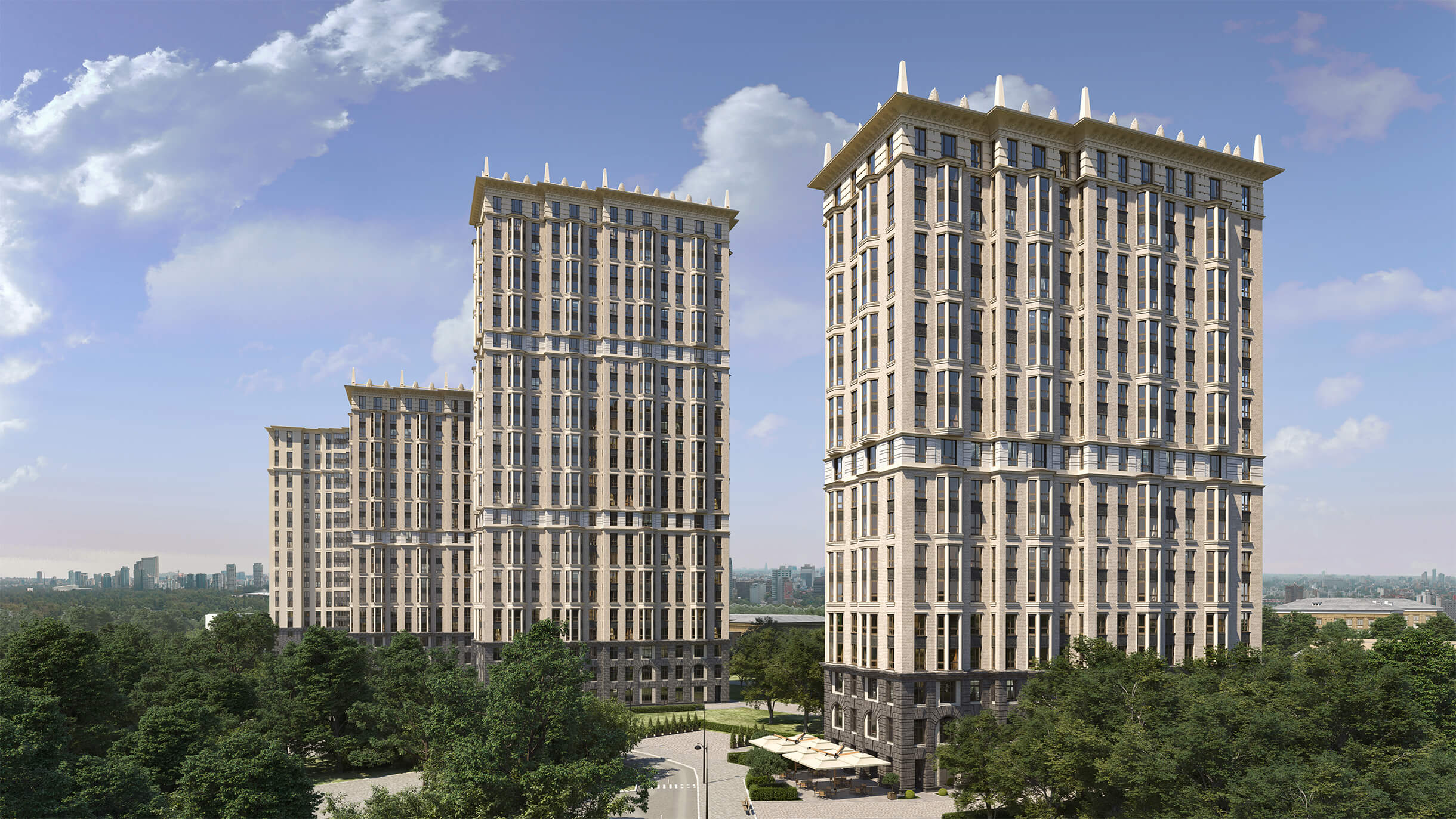 Комплекс имеет закрытую территорию, концепцию двор без машин. Территория всего комплекса будет передана жителям, где будет создан парк, детские и спортивные площадки.